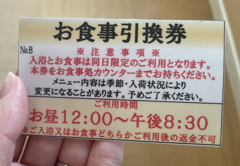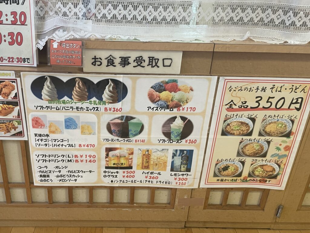 平日1,100円、土日祝1,200円で、入浴とお好きな食事メニューが食べられます。